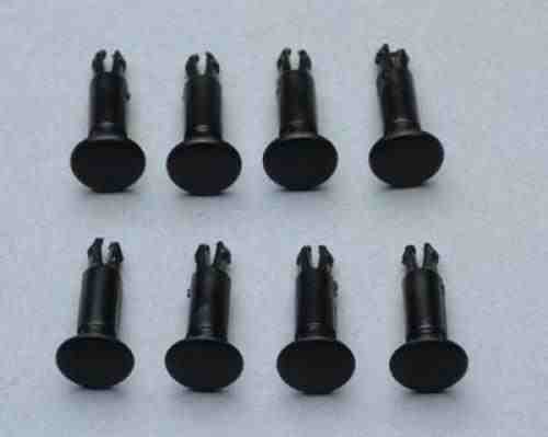 Zestaw ośmiu buforów do wszystkich modeli lokomotyw i wagonów w skali H0 z okrągłymi otworami na ramie czołowej.
