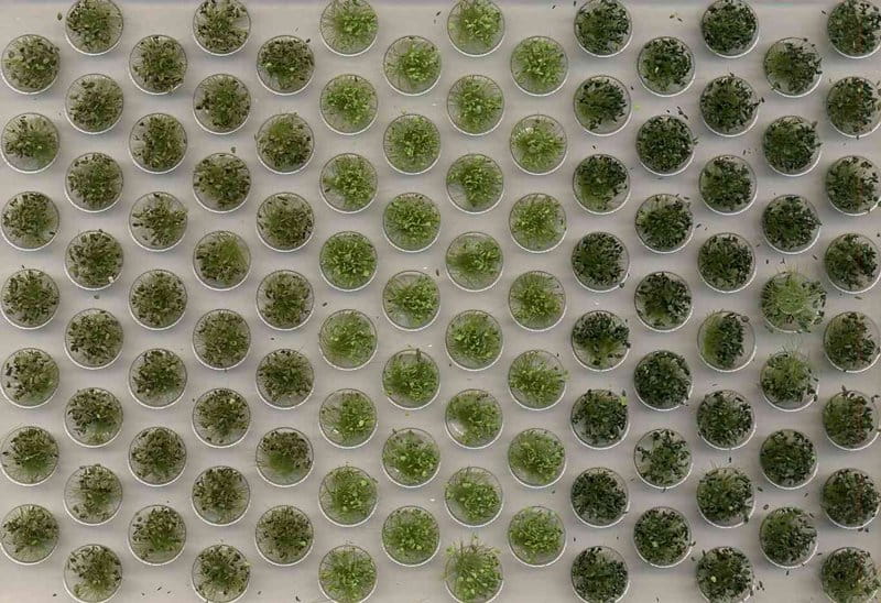 Opakowanie zawiera kępki trawy w kolorze zielonym i ciemnozielonym.