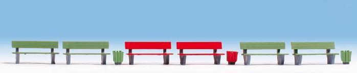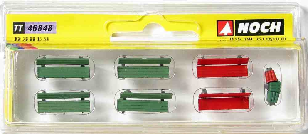 Zestaw ławek i koszy firmy Noch w skali TT.