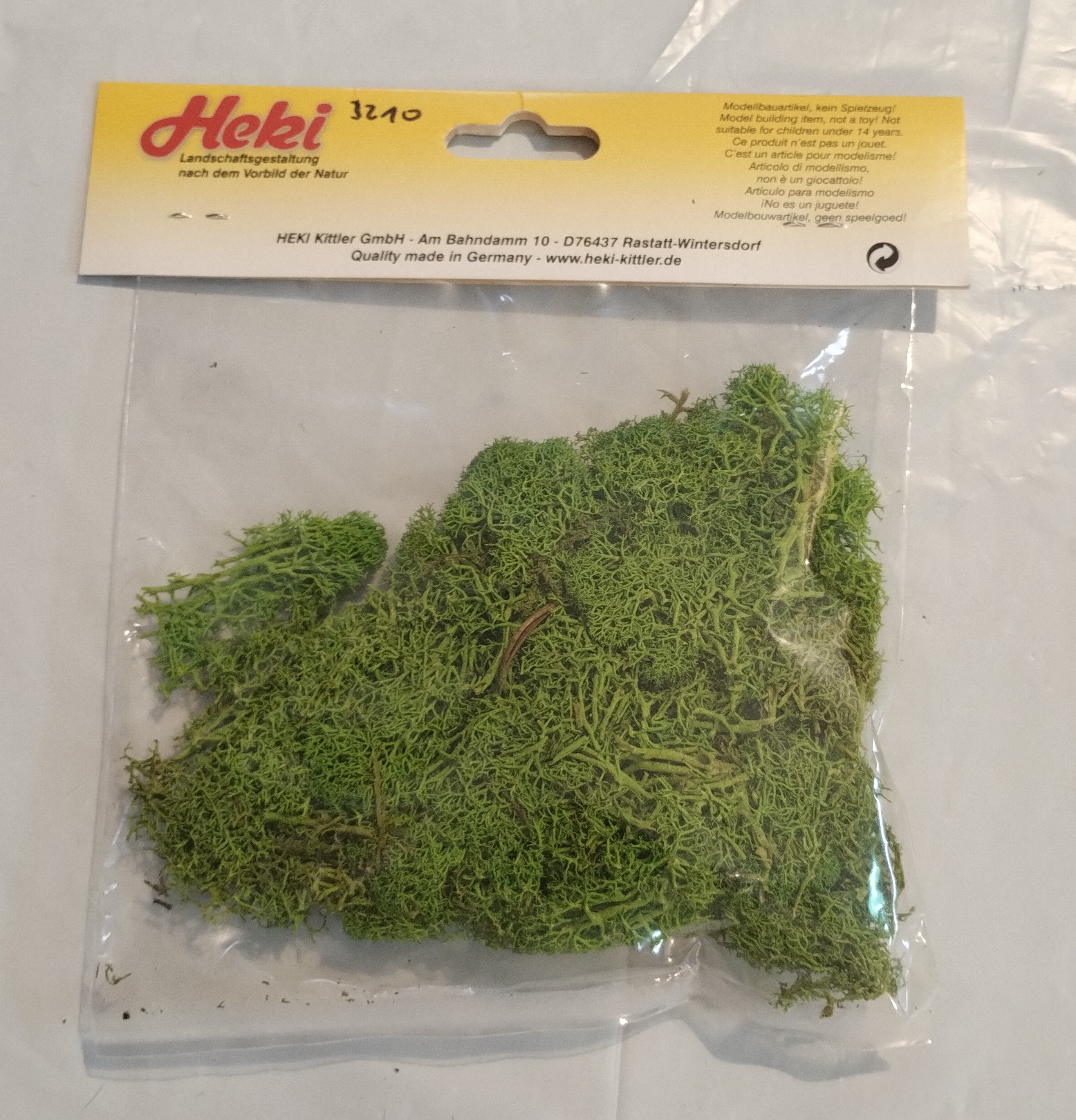Dekoracyjny mech irlandzki, barwiony na różne kolory jest wspaniałym materiałem do samodzielnego wykonania drzewek lub krzewów. Tak jak w przypadku podsypek kleimy go klejami typu Wikol.