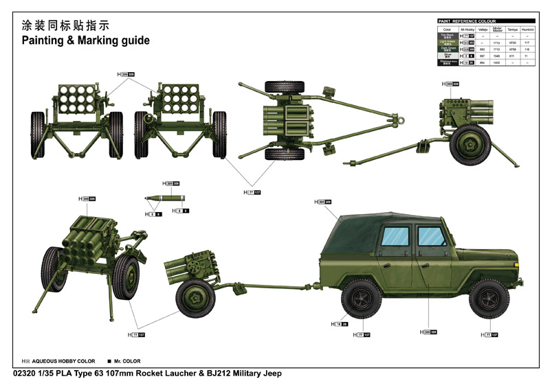 Chinese Type 63 107mm Rocket Laucher and BJ212 Military Jeep, Trumpeter 02320