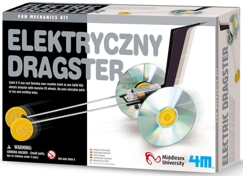 Dragster to samochód jeżdżący na wyścigach o krótkich odległościach. W tego typu autach najważniejsze jest bardzo szybkie przyspieszanie jak i aerodynamika pojazdu. W zestawie 4M zbudujemy go z płyt CD, przy okazji rozwijając swoją kreatywność i wykorzystując przedmioty codziennego użytku w jakże fascynujący sposób.