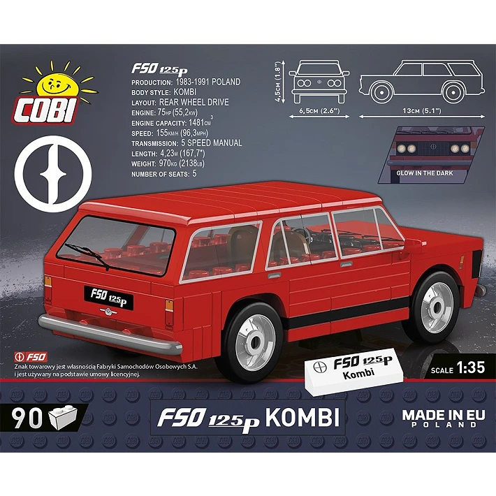 Licencyjny klockowy model w skali 1:35 wiernie oddaje charakterystyczne kształty swojego oryginalnego pierwowzoru. W modelu tym zrezygnowaliśmy z naklejek. Zostały one zastąpione trwałymi nadrukami, które nie ścierają się nawet w trakcie intensywnej zabawy. Obracające się koła wyposażone w opony idealnie nadają się do poruszania modelem w trakcie zabawy. Samochód z klocków konstrukcyjnych COBI to nie tylko zabawka, ale również historyczny model idealny do kolekcjonowania! Dołącz długiego kanciaka do swojej kolekcji Youngtimer od COBI!
