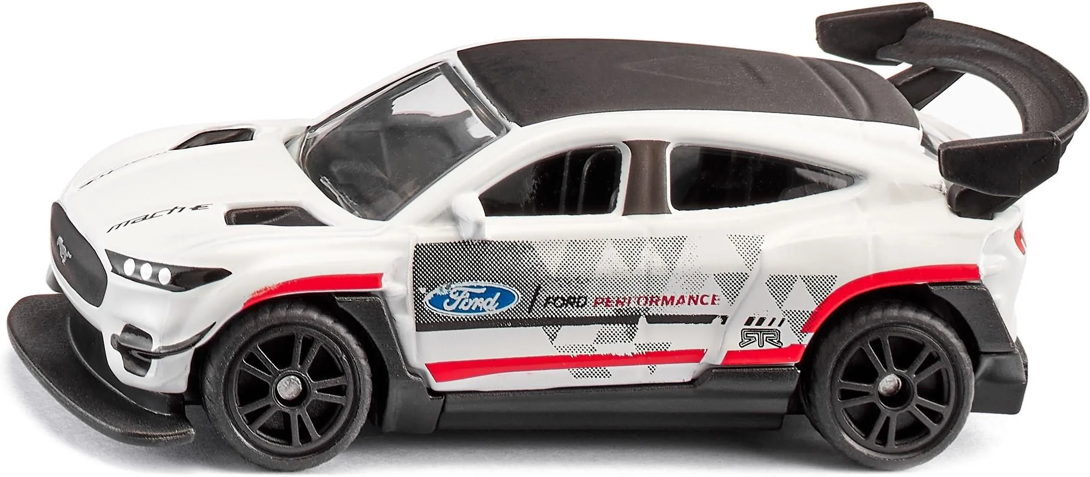 Metalowa karoseria tego wyścigowego samochodu zachwyca wyścigowym wzornictwem i starannie wykonanym nadrukiem: świecąca biel z wielobarwnymi akcentami kolorystycznymi i logo – plus potężnie wyglądające czarne felgi.