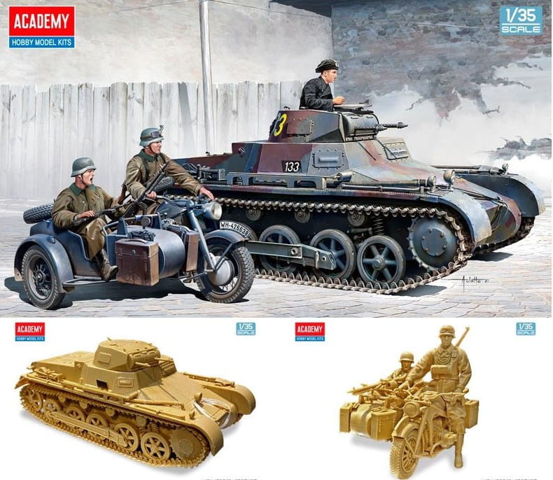 German Panzer I Ausf.B & Motorcycle, Academy 13556