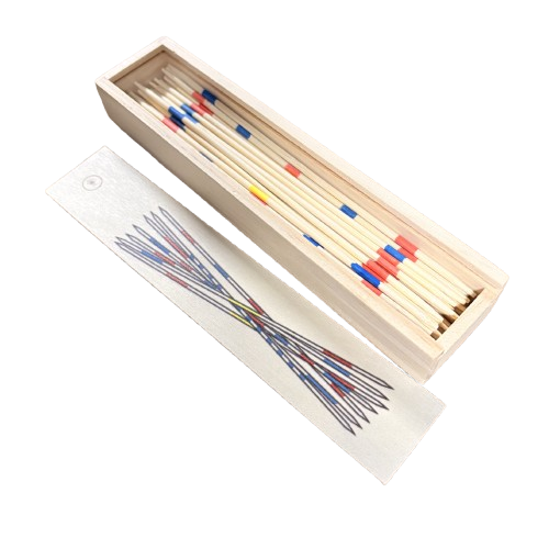 Bierki oraz pudełko do przechowywania wykonane są w drewna.