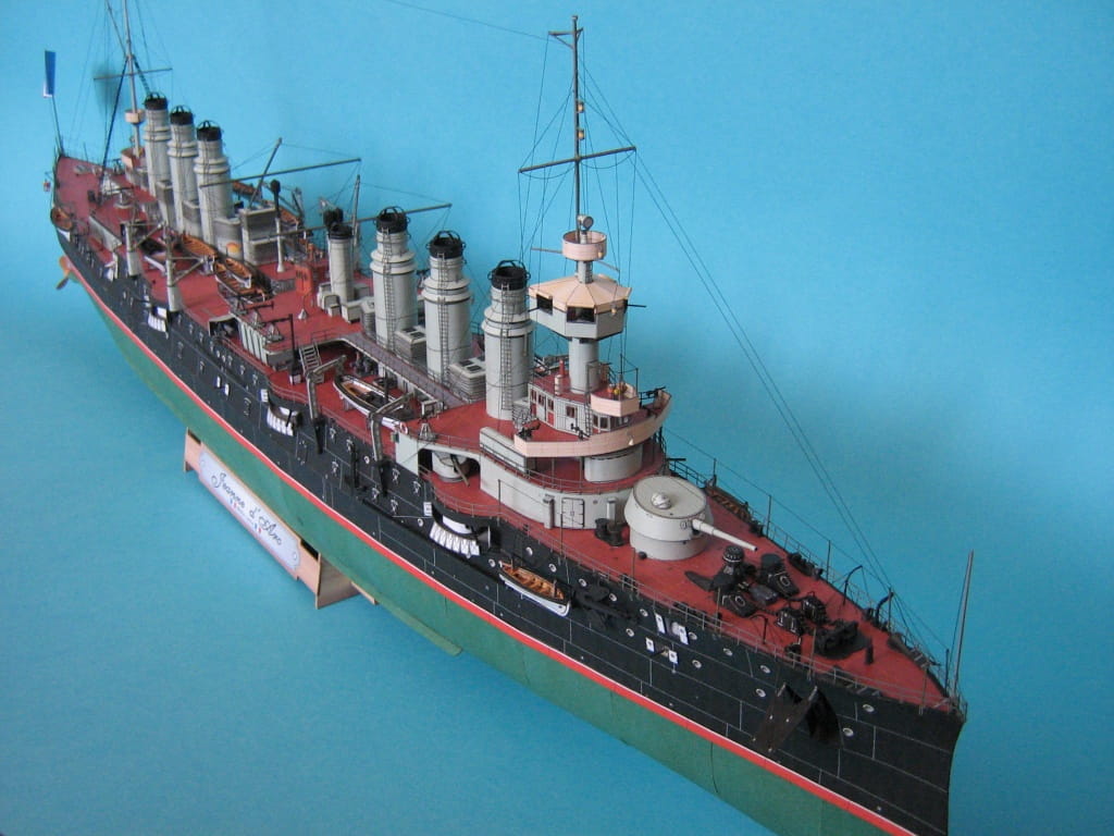 Model francuskiego krążownika pancernego z I Wojny Światowej.
