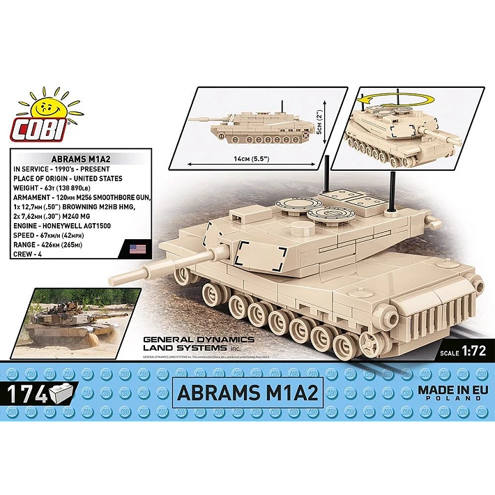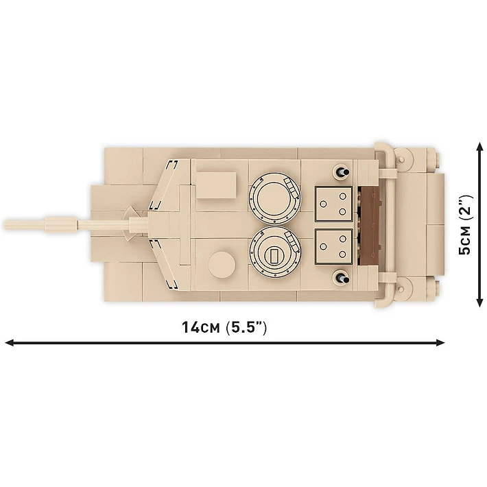 Mini model z klocków konstrukcyjnych COBI został zaprojektowany w skali 1:72 i składa się ze 160 wysokiej jakości elementów. Po zbudowaniu czołg ma 13,5 cm długości. Pomimo kompaktowego rozmiaru model zachował wszystkie najważniejsze cechy swojego historycznego pierwowzoru! Wieża czołgu jest ruchoma i można nią obracać.