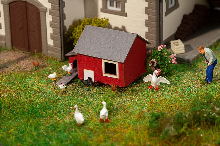 Kurnik z elementów wycinanych laserowo firmy Faller w skali H0.