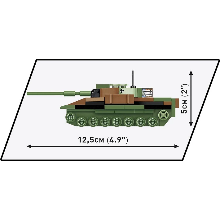 Mini model z klocków konstrukcyjnych COBI został zaprojektowany w skali 1:72 i składa się ze 147 wysokiej jakości elementów. Po zbudowaniu czołg ma 12,5 cm długości. Pomimo kompaktowego rozmiaru model zachował wszystkie najważniejsze cechy swojego historycznego pierwowzoru! Na bokach pojazdu znajdują się nadrukowane oznaczenia Bundeswehry. Wieża czołgu jest ruchoma i można nią obracać. Lufa porusza się w kierunku góra-dół. Model nadaje się w sam raz na dobry początek przygody z klockami konstrukcyjnymi COBI.