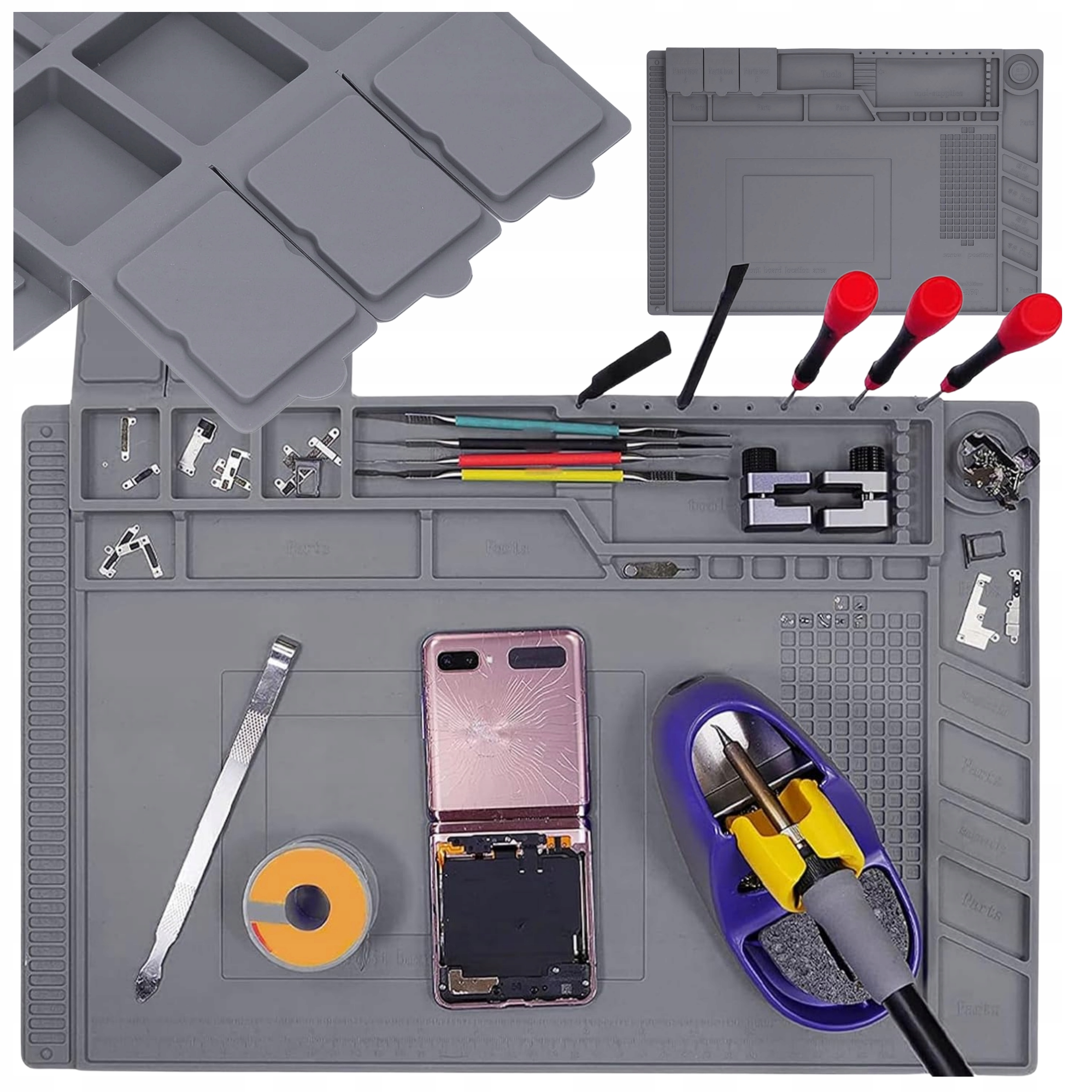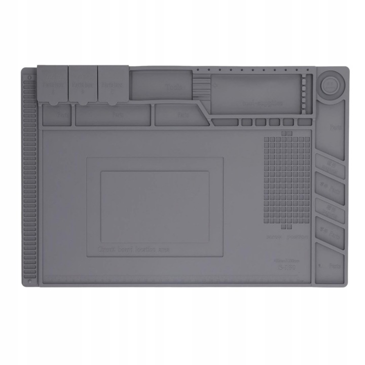 Mata została wyposażona w aż 42 małe przegródki, 5 magnetycznych korytek oraz 3 pola magnetyczne, dzięki czemu wszystkie elementy pozostają na swoim miejscu – zarówno podczas napraw elektroniki, jak i składania modeli.