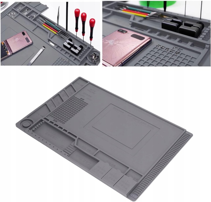 Profesjonalna mata serwisowa wykonana z wysokiej jakości silikonu to niezbędne wyposażenie każdego stanowiska pracy z elektroniką oraz modelarstwem. Zaprojektowana z myślą o serwisantach, hobbystach i modelarzach, zapewnia wygodę, bezpieczeństwo oraz doskonałą organizację podczas lutowania, napraw i precyzyjnych prac manualnych.