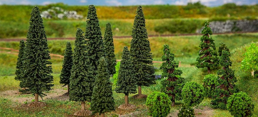 Mieszane drzewka leśne firmy Faller w skali TT+N+Z.