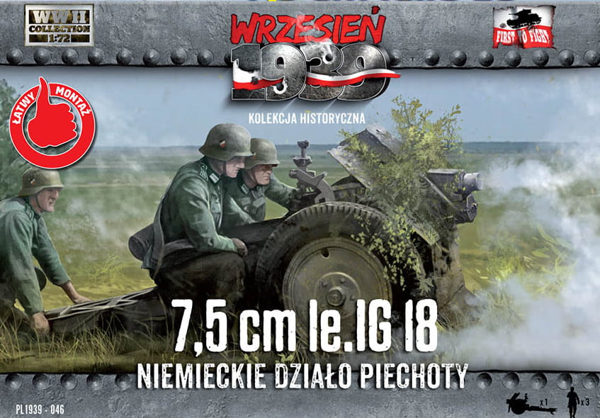 Wrzesień 1939 -  model 7,5 cm le.IG 18 niemieckiego działa piechoty i 3 figurki - gazetka w zestawie z modelem.