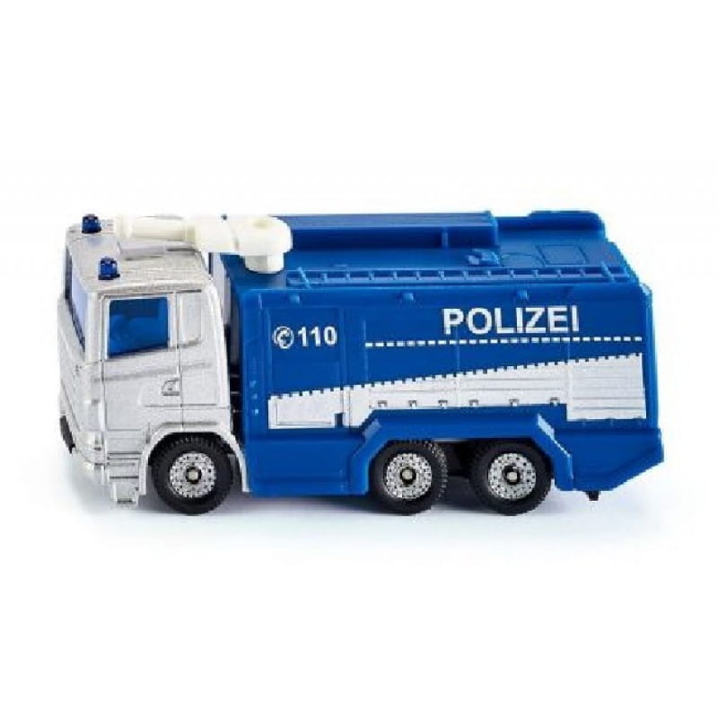 Tego typu pojazdy spotykamy najczęściej podczas dużych imprez. Gdy istnieje obawa, że może dojść do zamieszek, policja wysyła na miejsce pojazd specjalny, którego zadaniem jest rozgromienie dużej grupy ludzi. Samochód jest wyposażony w duży zbiornik z wodą i posiada ruchome rury przeznaczone do wyrzucania wody pod dużym ciśnieniem. Policyjna armatka Siku odwzorowuje prawdziwy pojazd. Srebrna kabina trzyosiowego autka wykonana została z metalu, natomiast reszta elementów z plastiku.