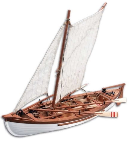 Opakowanie zawiera stępkę ze sklejki, ramki w kolorze orzechowym, oszalowanie z twardego drewna, armatura: śruby oczkowe, szpilki, olinowanie z bawełny, materiał na żagle i dach. Wszystkie elementy drewniane są wstępnie przygotowane. Pełnowymiarowe plany i ilustrowana instrukcja jest załączona.