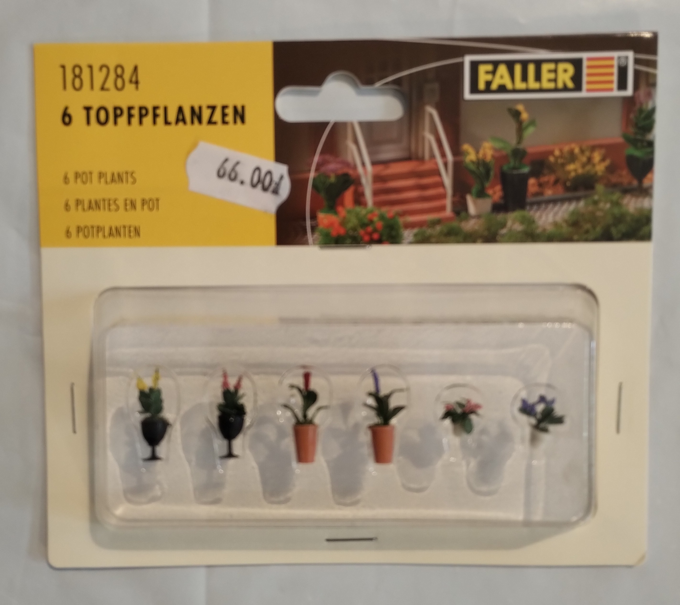 Sześć roślin doniczkowych firmy Faller w skali H0.