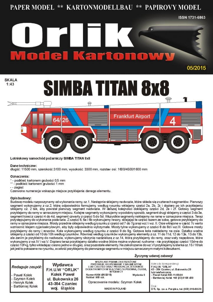 Opracowanie modelu: Szymon Kołek. Model zawiera części na 5 arkuszach A4 oraz 1 strony z rysunkami montażowymi. Model opracowany komputerowo. Drugie wydanie modelu.