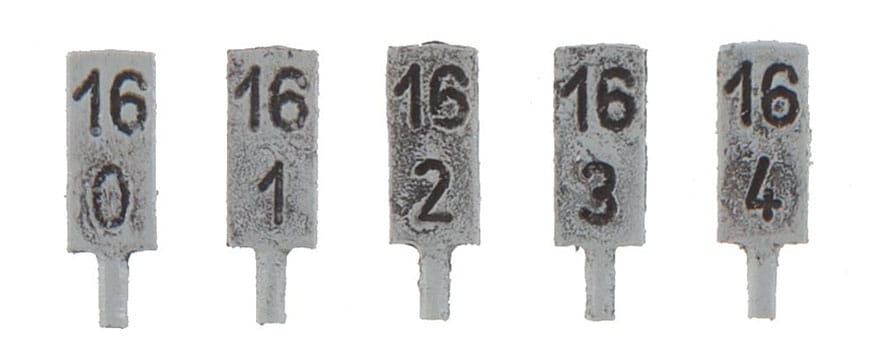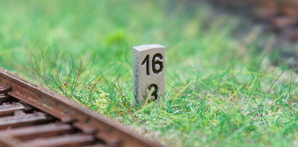 Plastikowe słupki hektometrowe firmy Faller w skali H0.