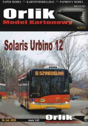 Model kartonowy autobusu miejskiego Solaris do sklejania firmy Orlik w skali 1:43.