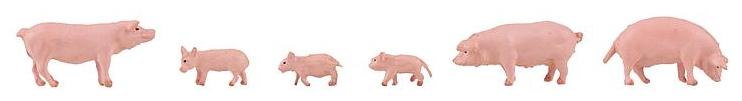 Figurki świń (3 dorosłe i 3 warchlaki) firmy Faller w skali H0.