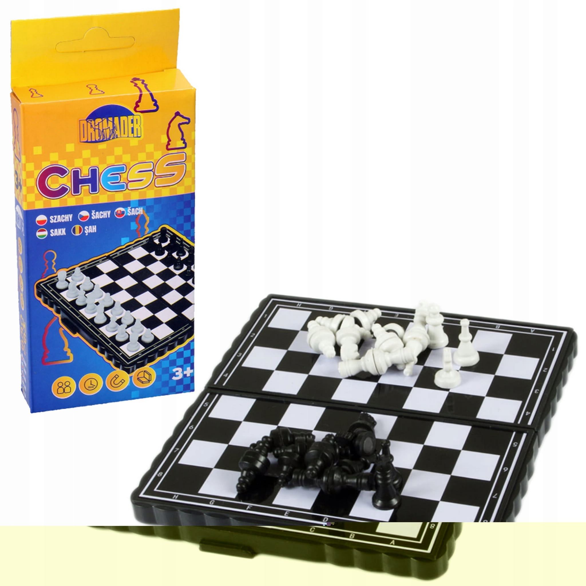 Magnetyczne szachy to mały zestaw do popularnej gry. Zestaw o wygodnym formacie, doskonale sprawdzi się podczas podróży.
