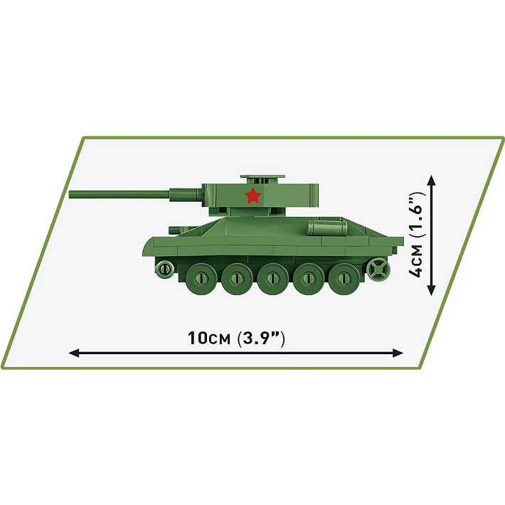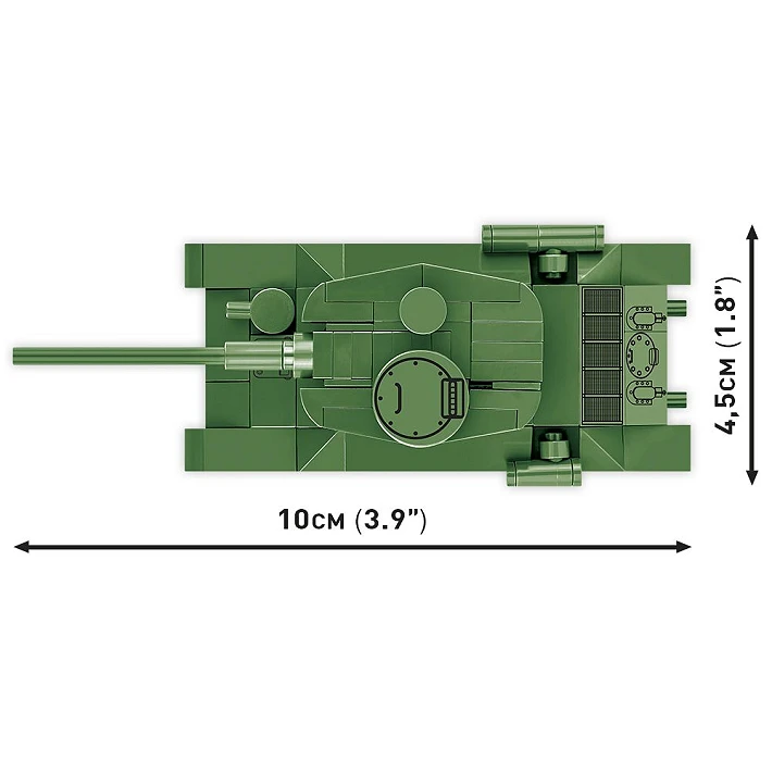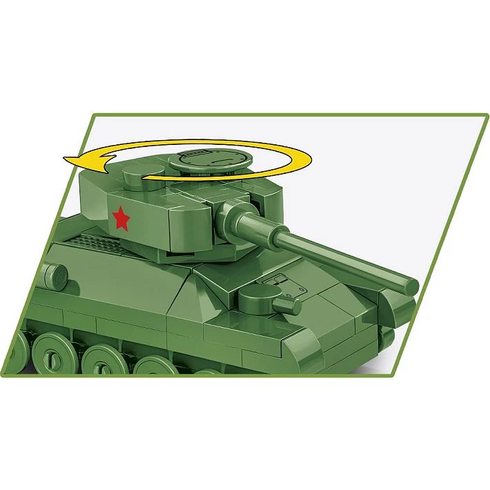 Mini model z klocków konstrukcyjnych COBI został zaprojektowany w skali 1:72 i składa się ze 110 wysokiej jakości elementów. Po zbudowaniu czołg ma 10 cm długości. Pomimo kompaktowego rozmiaru model zachował wszystkie najważniejsze cechy swojego historycznego pierwowzoru! Na bokach wieży znajdują się nadruki z oznaczeniami Armii Czerwonej. Czołgiem można poruszać dzięki zamontowanym kołom. Również wieża czołgu jest ruchoma i można nią obracać.
