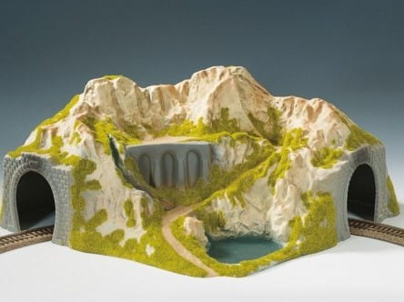Model dużego tunelu, z imitacją trawki i jeziorka, gotowy na łuk R1,R2.