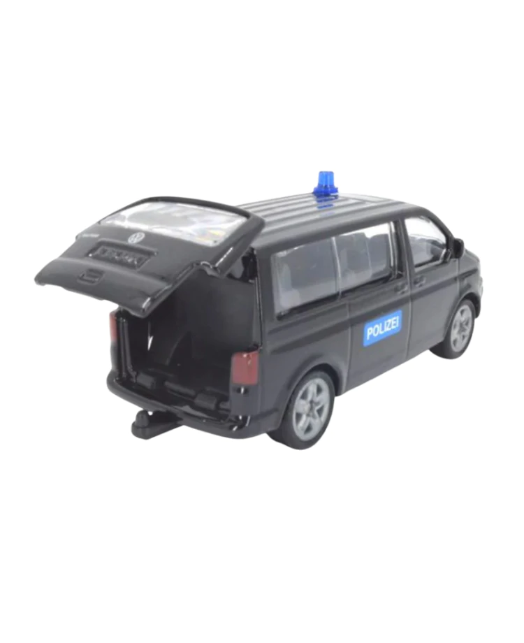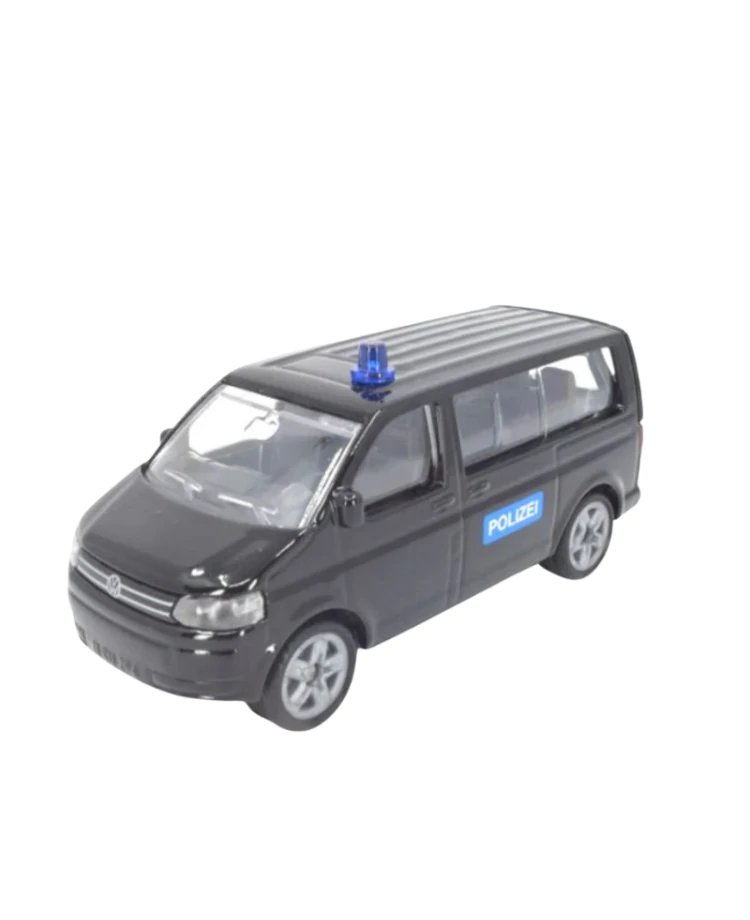 Ten szczegółowy, odlewany ciśnieniowo metalowy model, wzorowany na kultowym furgonie Volkswagen T5, charakteryzuje się realistycznymi oznaczeniami, policyjnym pasem świetlnym i solidną konstrukcją – idealny zarówno dla kolekcjonerów, jak i dzieci.