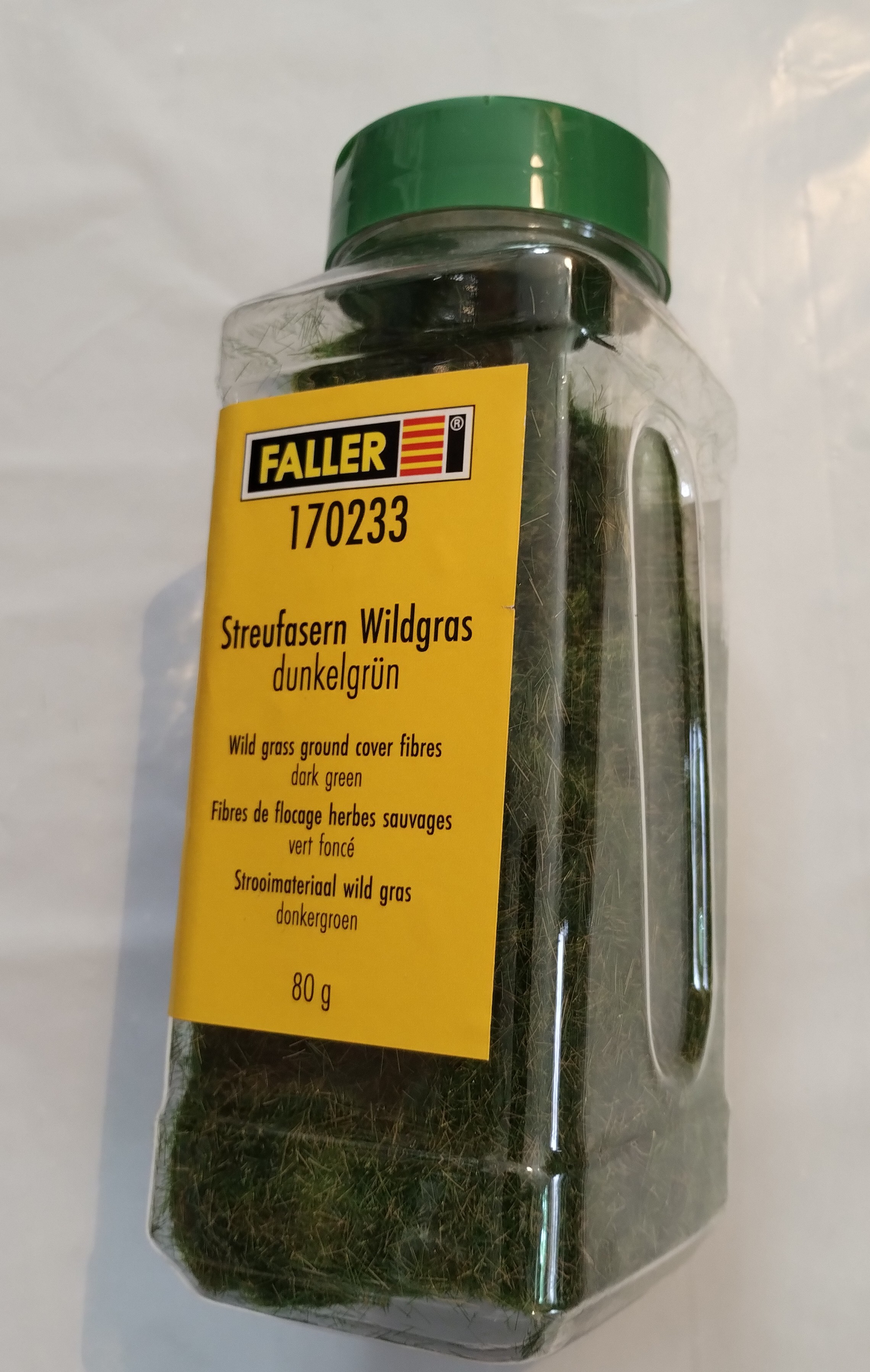 Włókna okrywowe dzikiej trawy, ciemnozielone firmy Faller w skali H0+TT+N+Z.