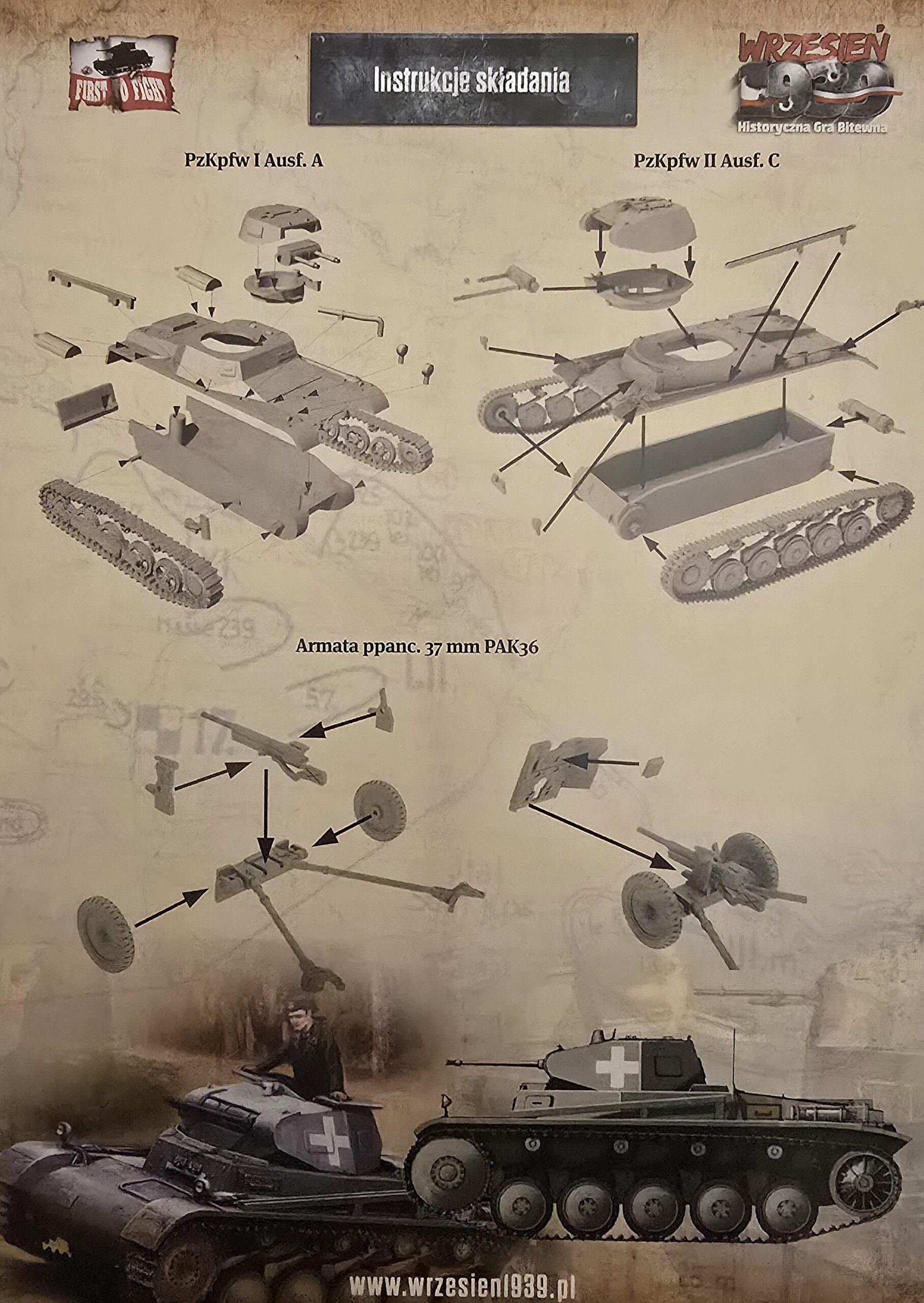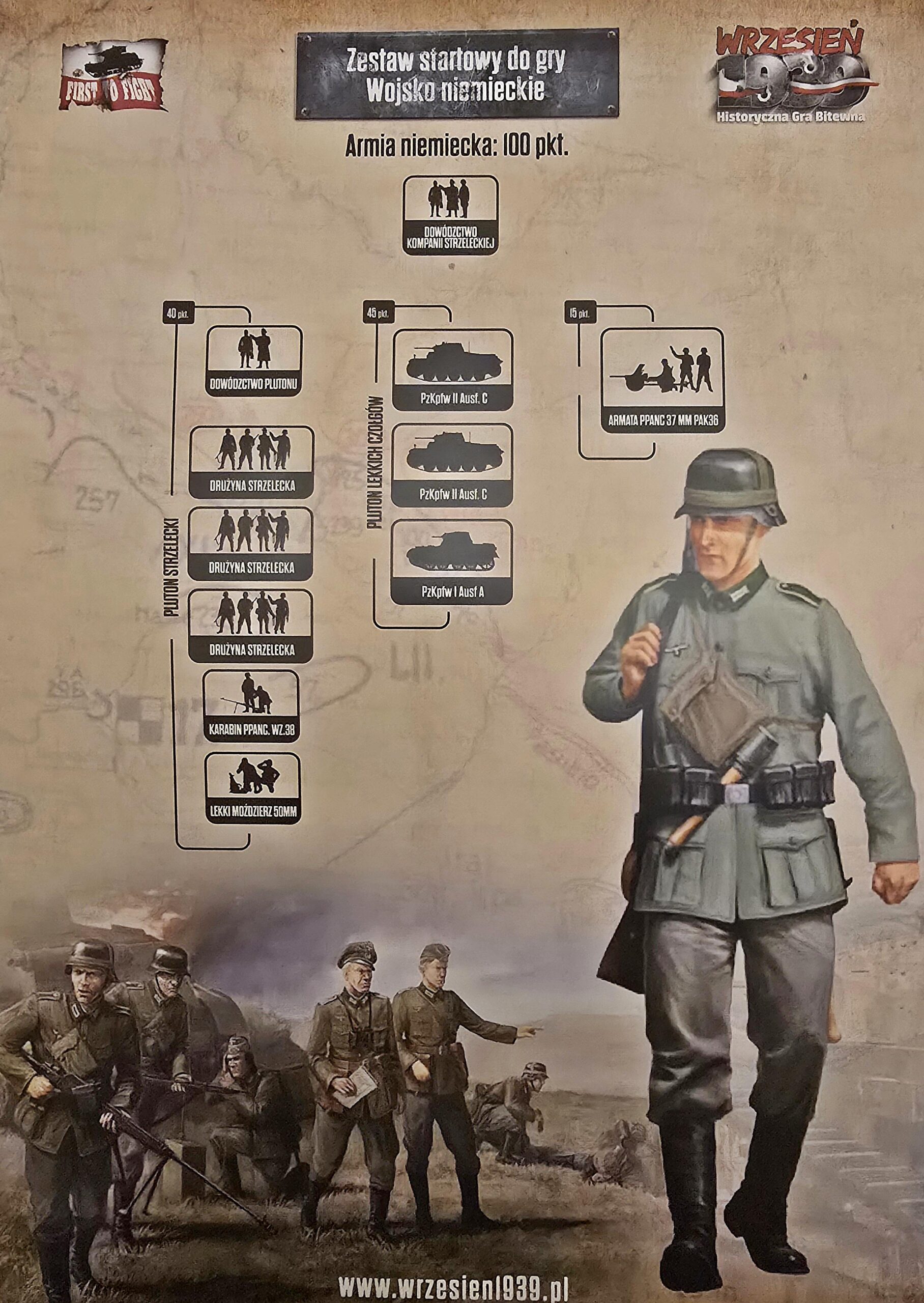 Zestaw startowy do gry Wrzesień 1939 – wojsko niemieckie za 100 pkt., zawiera: