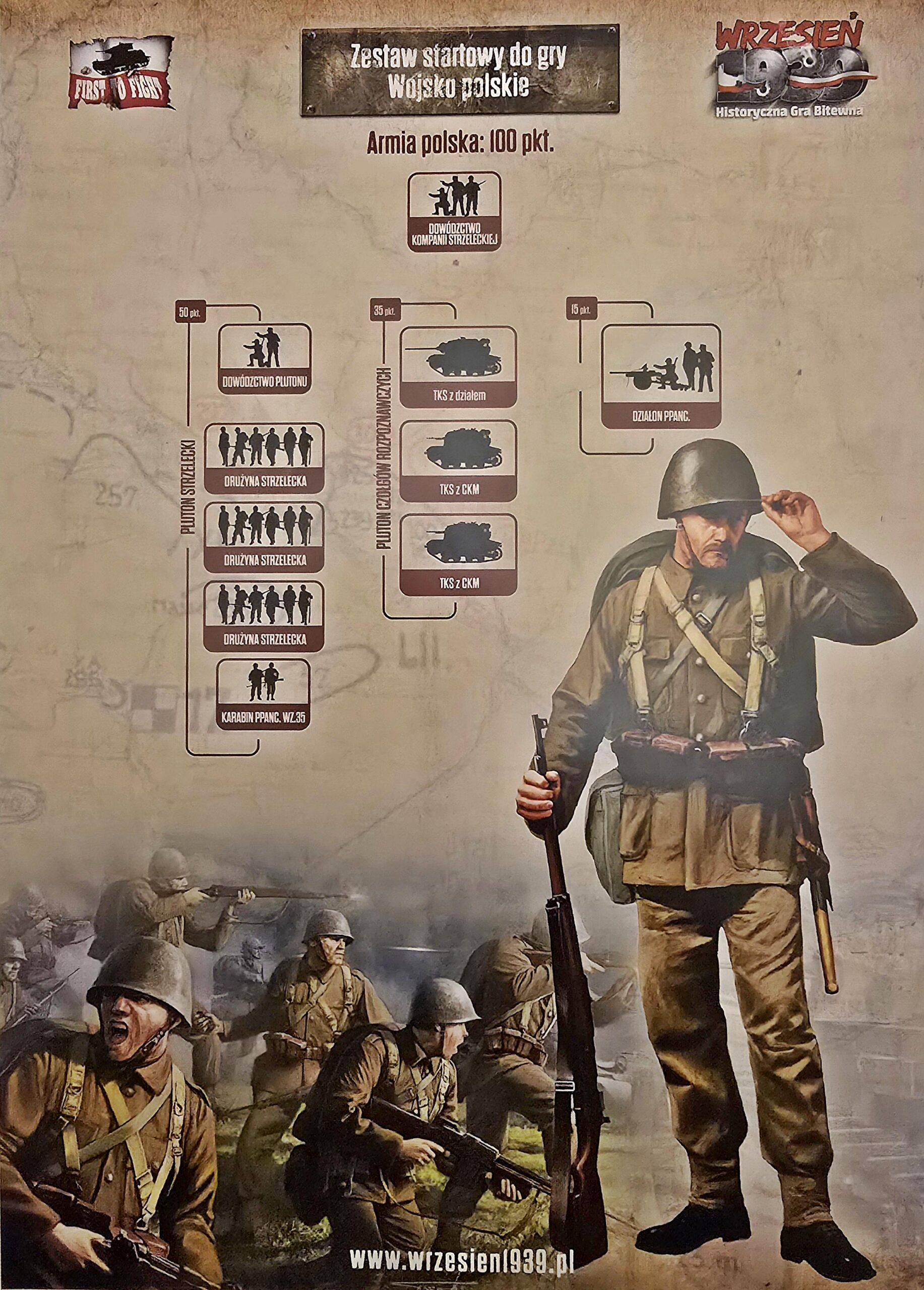 Zestaw startowy do gry Wrzesień 1939 – wojsko polskie za 100 pkt., zawiera: