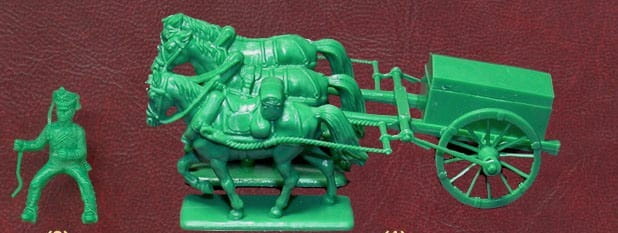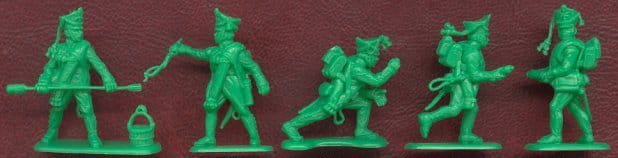 Zestaw zawiera 17 niepomalowanych figurek pieszych, 3 konnych oraz 3 działa.