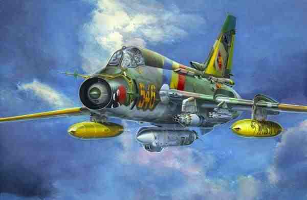 Su-17 (oraz jego wersje eksportowe Su-20 i Su-22), oznaczenie NATO Fitter – jednomiejscowy samolot myśliwsko-bombowy, średniopłat o zmiennej geometrii skrzydeł – kąt skosu regulowany skokowo w zakresie od +28° do +68°, konstrukcja metalowa półskorupowa, podwozie chowane w locie z kółkiem przednim, kabina hermetyzowana z fotelem katapultowym. Zaprojektowany w biurze konstrukcyjnym Pawła Suchoja, produkowany w ZSRR. Wszedł do służby w 1970 roku. Obecnie używany jest przez 5 państw: Polskę, Angolę, Syrię, Wietnam i Jemen.