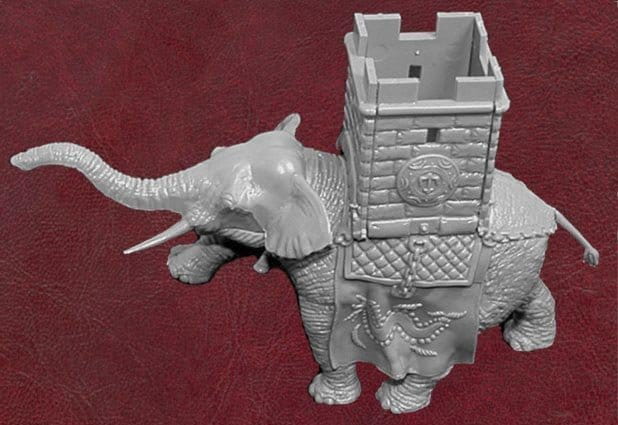 Zestaw zawiera dwa słonie z jeźdźcami oraz 5 pieszych żołnierzy.